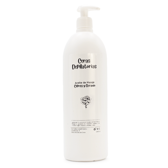 Aceite de masaje estimulante enriquecido con aceites esenciales de ciprés y geranio.