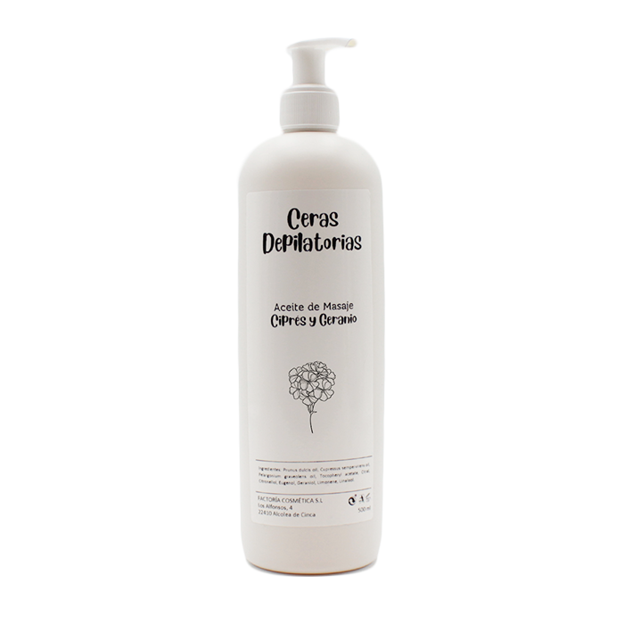Aceite de masaje estimulante enriquecido con aceites esenciales de ciprés y geranio.