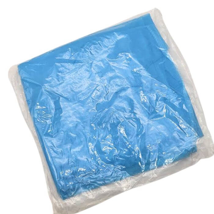 Está fabricado con un tejido no tejido (TNT) de 30 gramos por metro cuadrado, lo que lo hace ligero, cómodo y transpirable para el cliente.