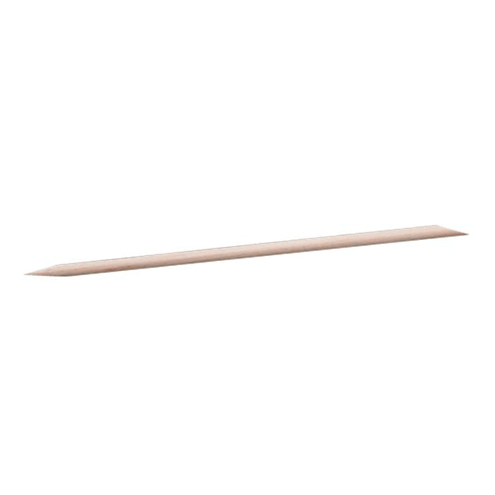Bajapieles de punta biselada para empujar las cutículas hacia la base de la uña. En el extremo opuesto, presenta una punta afilada diseñada para alcanzar debajo de la uña y realizar una limpieza completa. El instrumento está fabricado con madera flexible y resistente.