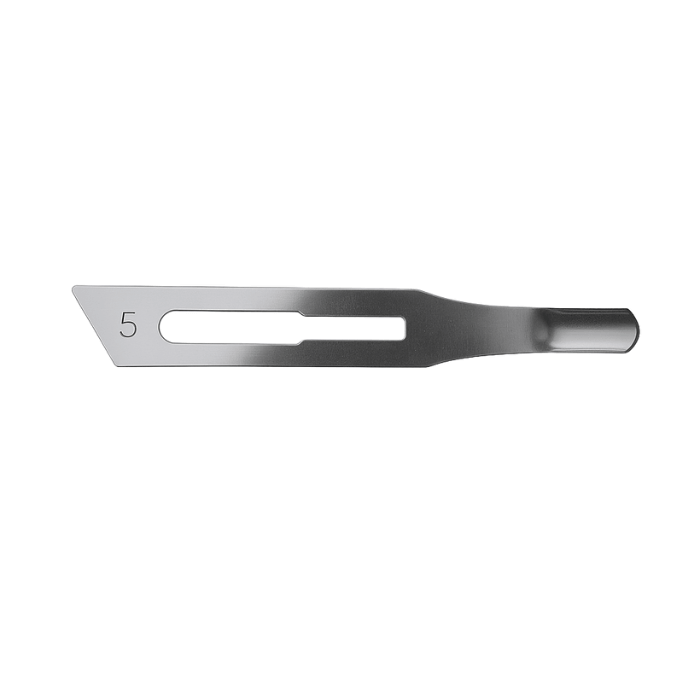 Pack de 12 gubias nº5 estériles y desechables. Corte preciso y controlado para durezas localizadas y callosidades. Ideal para podología profesional.